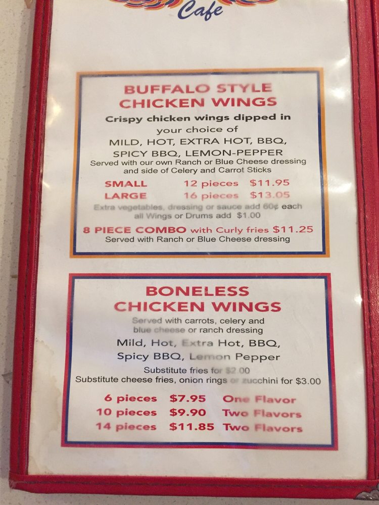 Served with carrots, celery and blue cheese or ranch dressing. Mild, Hot, Extra Hot, BBQ, Spicy BBQ, Lemon Pepper
